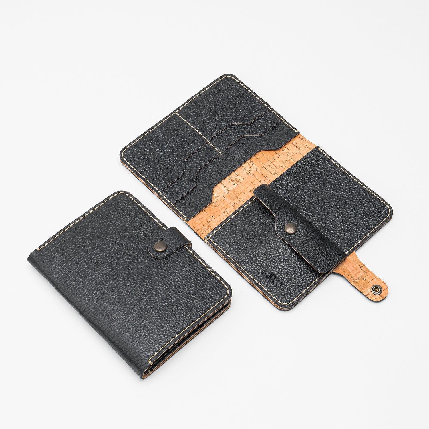 Crafted for maximum utility, our larger passport size Major wallet brings together meticulous Portuguese craftsmanship, resilient high-grain upcycled leather and cork lining.