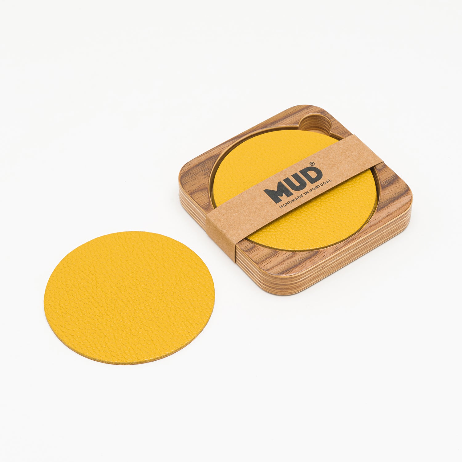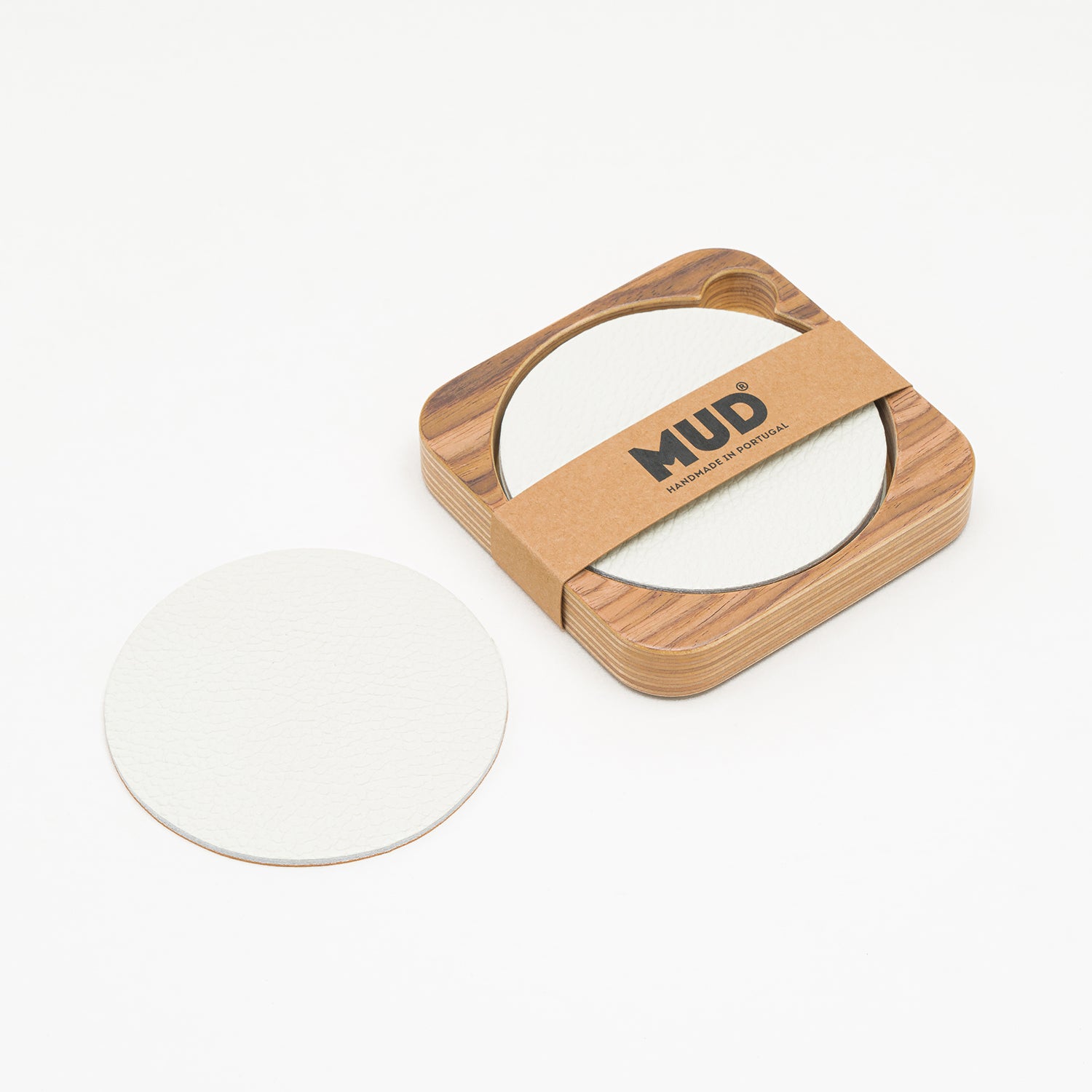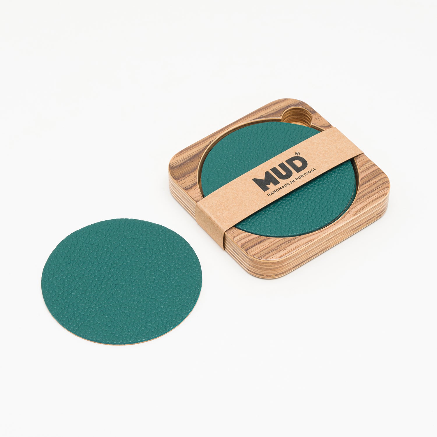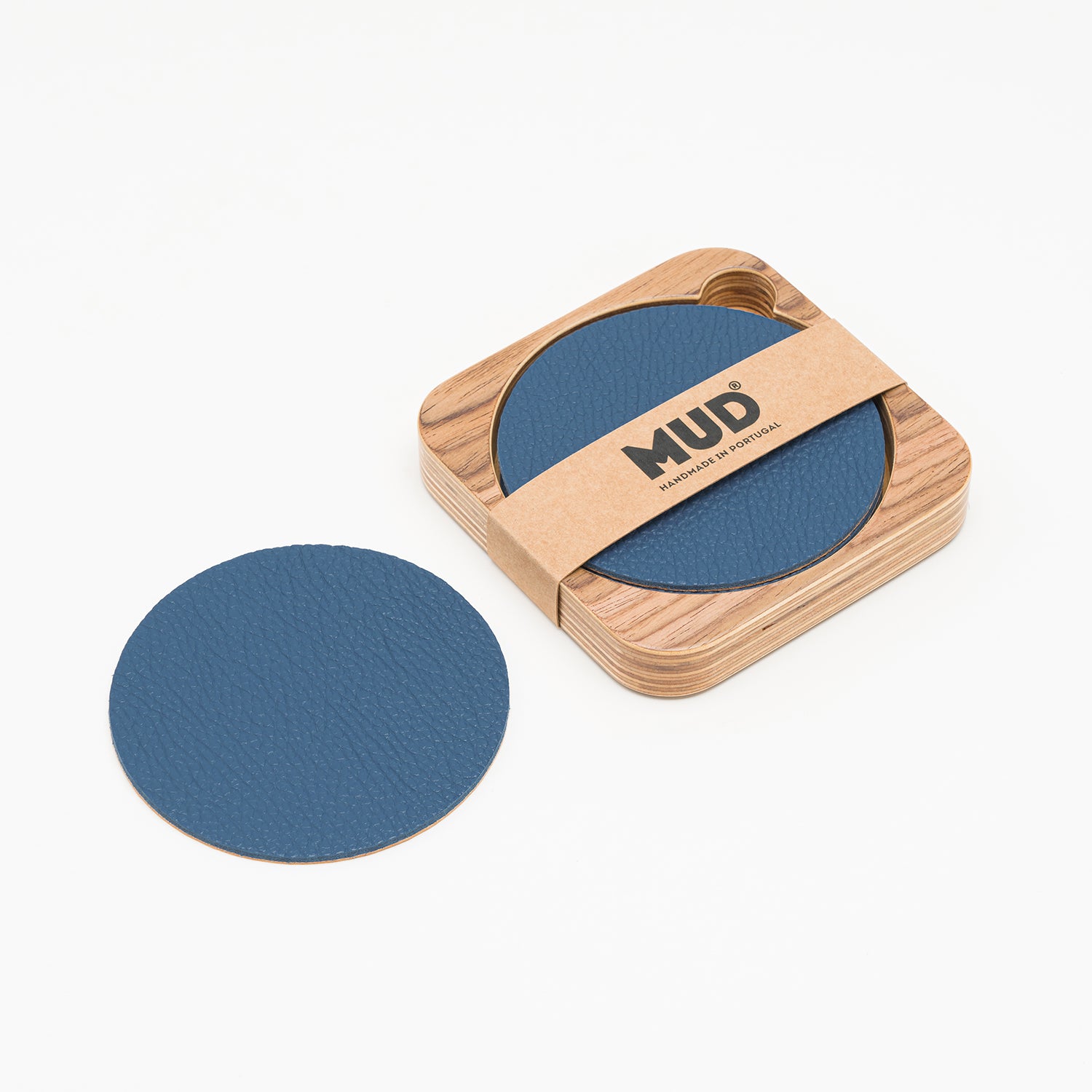 Crafted in Portugal, this set of 6 leather coasters in a wooden case is ideal for safeguarding your desktop, countertops, tables, and other surfaces from stains or damage. The all-natural materials used are exceptional at preventing condensation from cold or hot beverages, while the upcycled leather boasts remarkable stain-resistant properties. Additionally, the coasters are designed with a soft, non-slip cork backing to provide additional protection for your surfaces. They are suitable for all beverages, including beer, coffee, tea, and more. The MUD coasters are an excellent enhancement for any household.