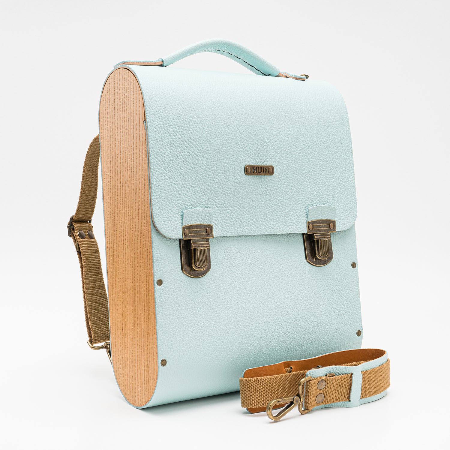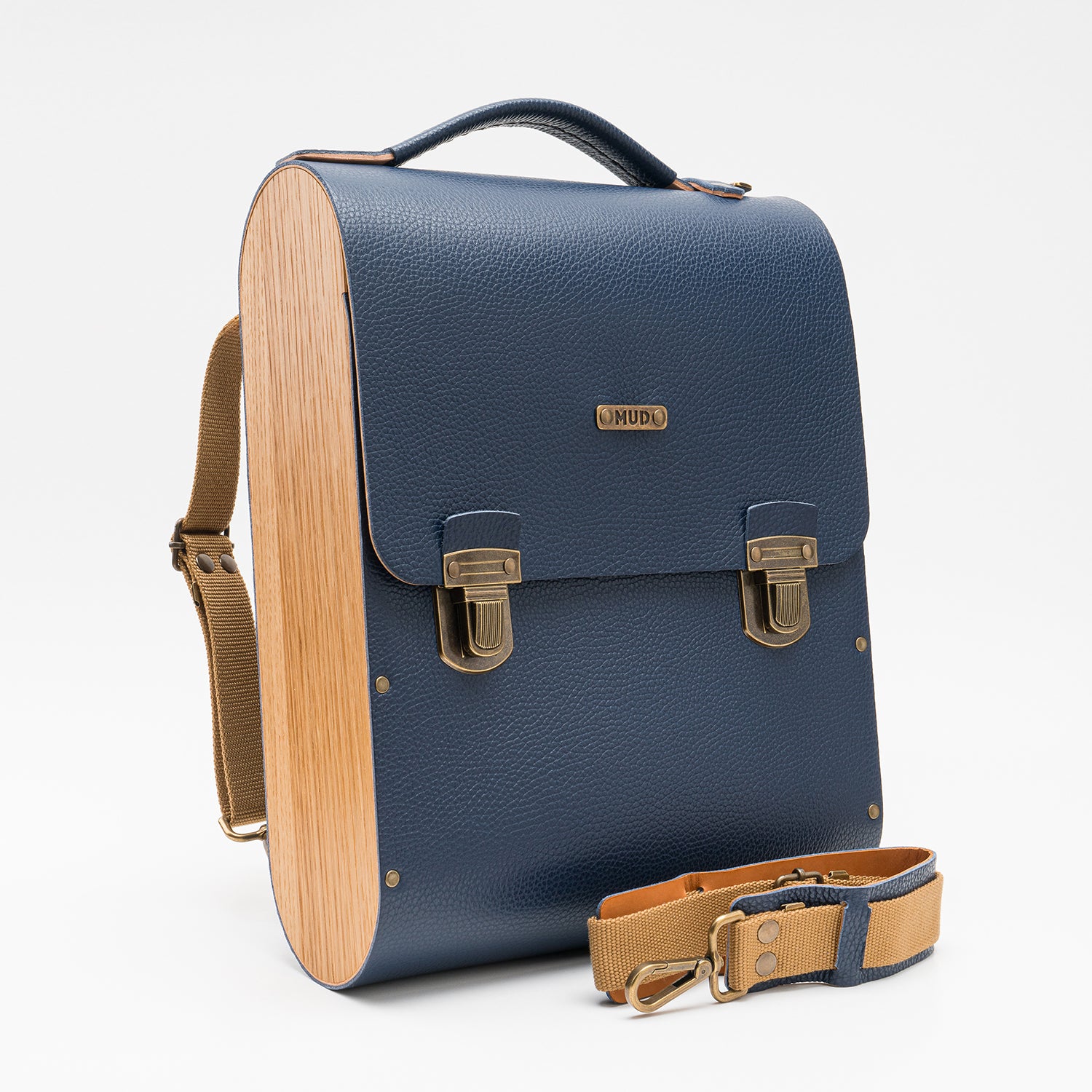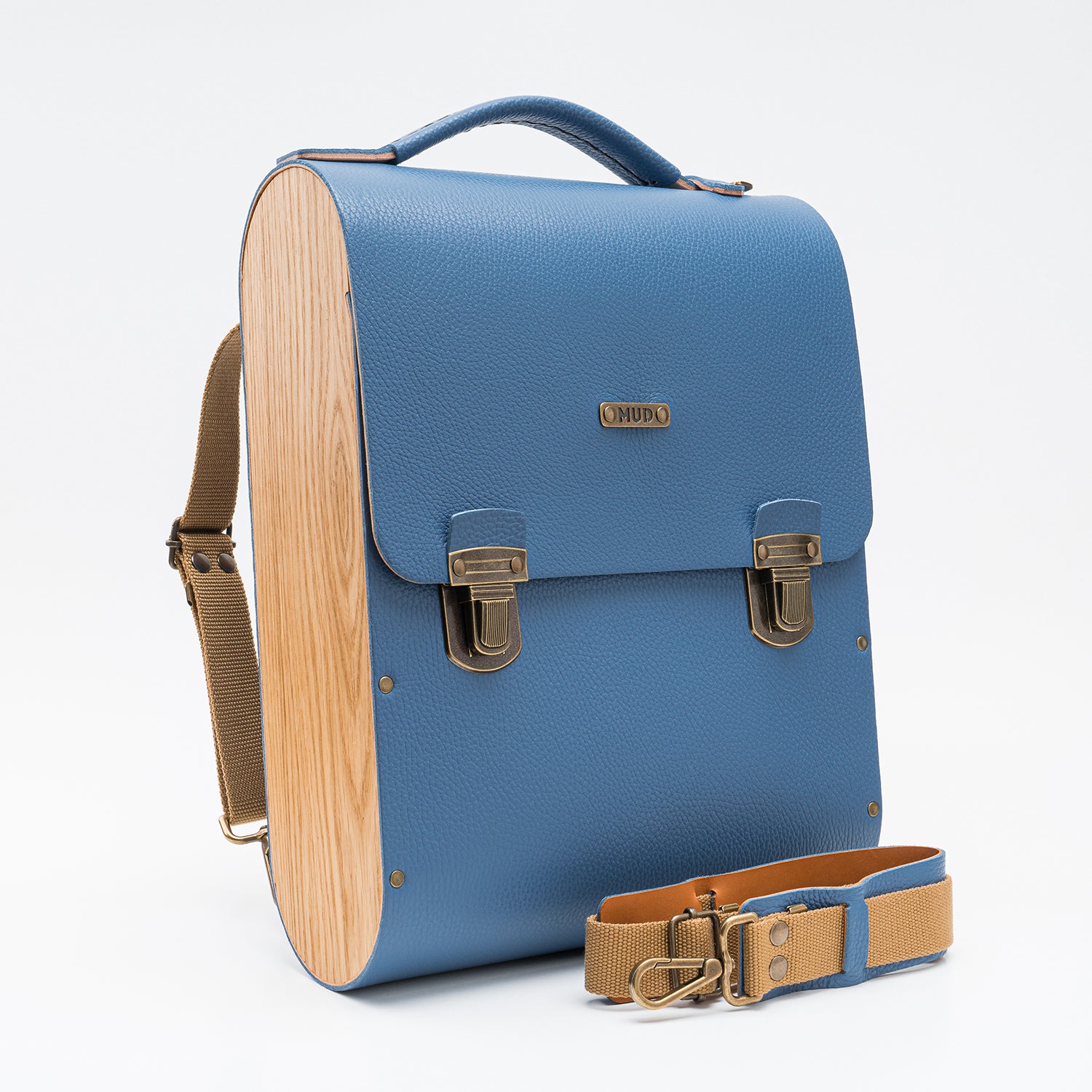 O couro e a madeira são resistentes à água. Se ficarem molhados, deixe-os secar naturalmente sem aplicar fontes de calor externas. Para limpar o couro e o revestimento de cortiça, utilize um pano macio para aplicar uma solução de sabão neutro e água em movimentos circulares. Recomendamos hidratar a madeira duas vezes por ano com cera de abelha ou cera natural MUD para manter a sua qualidade e durabilidade.