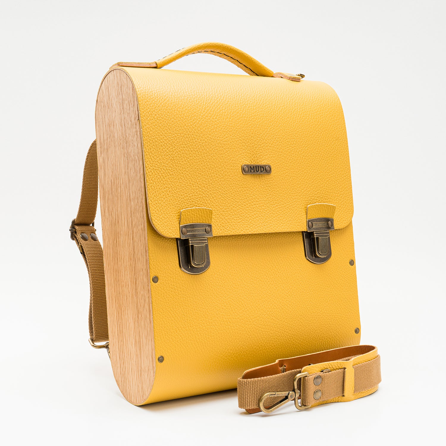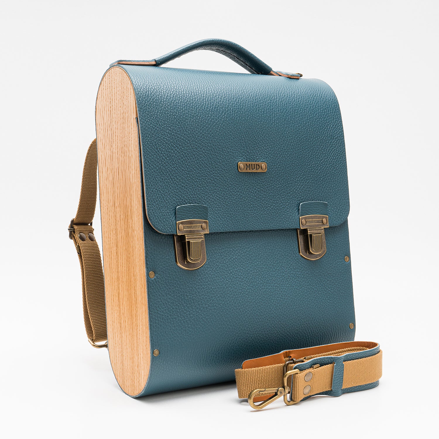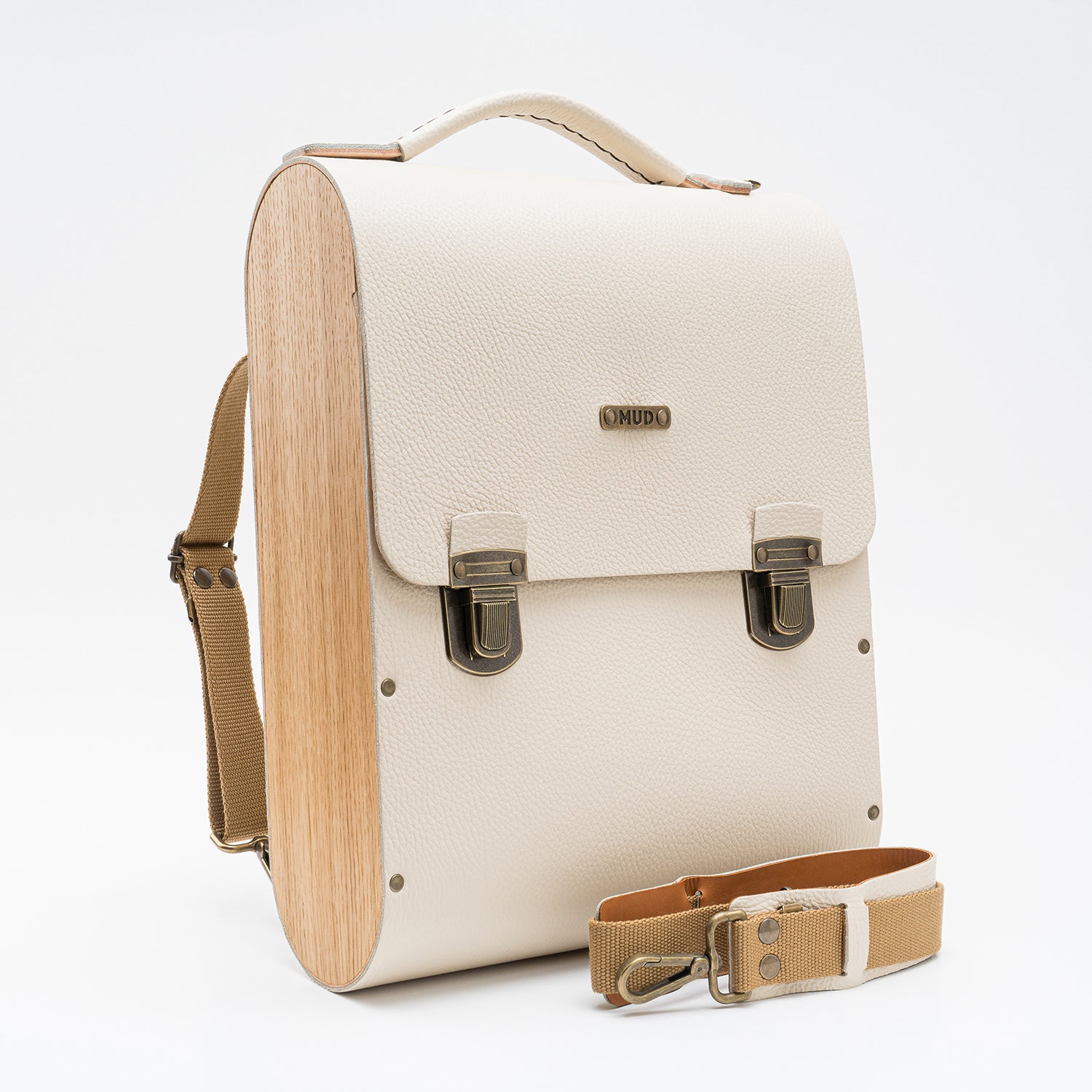 O couro e a madeira são resistentes à água. Se ficarem molhados, deixe-os secar naturalmente sem aplicar fontes de calor externas. Para limpar o couro e o revestimento de cortiça, utilize um pano macio para aplicar uma solução de sabão neutro e água em movimentos circulares. Recomendamos hidratar a madeira duas vezes por ano com cera de abelha ou cera natural MUD para manter a sua qualidade e durabilidade.
